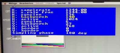 Macintosh-Systeme der 90er nutzen eigene Sync-Timings, die nicht zu heutigen VESA-Standards passen. Während die Auflösung 1024×768 technisch korrekt ist, weichen die Horizontal-Timings vom typischen PC-VGA-Timing ab.