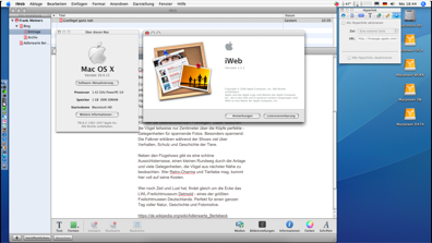 Trotz seines Alters läuft der kleine PowerPC-Mac erstaunlich stabil auch dank einer nachgerüsteten SSD, die ich eingebaut habe, um dem System neuen Schwung zu verleihen. Als Betriebssystem verwende ich Mac OS X 10.4 Tiger, und für die Gestaltung meiner Seite nutze ich iWeb 1.1.1 aus dem iLife 06-Paket.